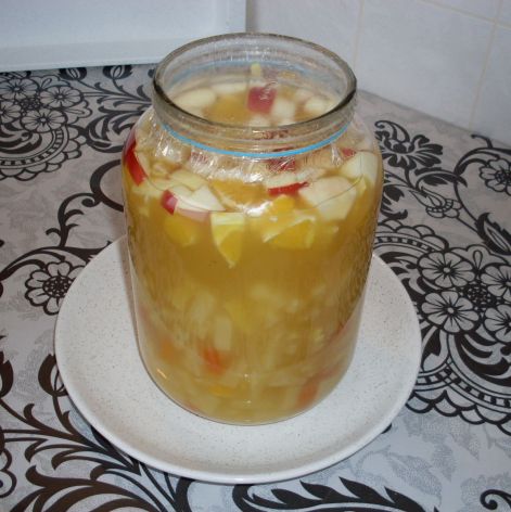A befőtteket egy nagyobb üvegbe öntjük, hozzáadjuk a felkockázott narancsot és almát, a citrom levét rácsavarjuk, tehetünk bele valami édeset. Ráöntjük a dobozos üdítőt.