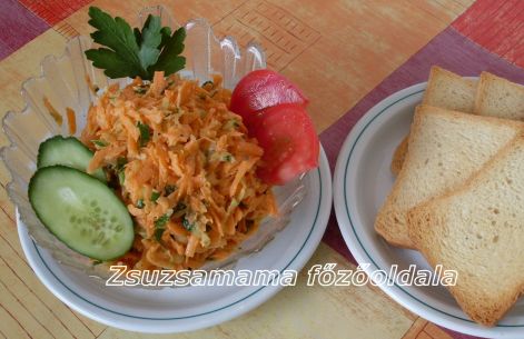 - A vöröshagymát fél-karikára vágjuk, és a zsiradékon megsütjük, majd rátesszük az összetört sárgarépát. Rövid ideig együtt sütjük az egészet. Fűszerezzük. Lehűtjük, kenyérrel vagy kétszersülttel fogyasztjuk.
