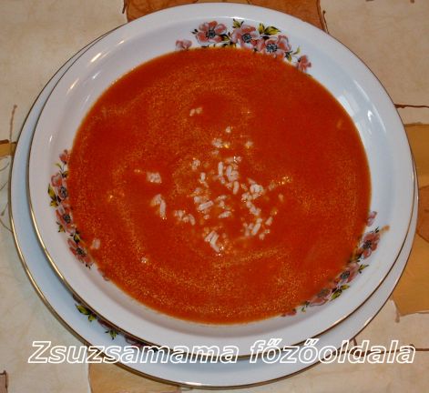 - A lisztet az olajon kissé megpirítjuk. Kevés vizet öntünk rá, és a paradicsomot. Beletesszük a vöröshagymát (kettévágva). Ízesítjük. Rövid ideig (kb. 10 perc) főzzük. Kevergessük, nehogy leégjen.