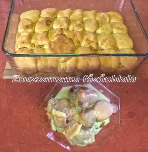 Újbóli kelesztés után közepes hőmérsékletű sütőben aranybarnára sütjük.